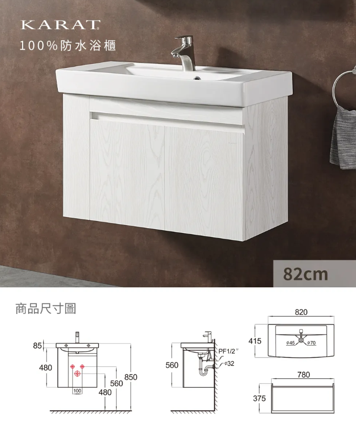 ● 浴櫃材質:實心PVC防水發泡板(白木紋)
