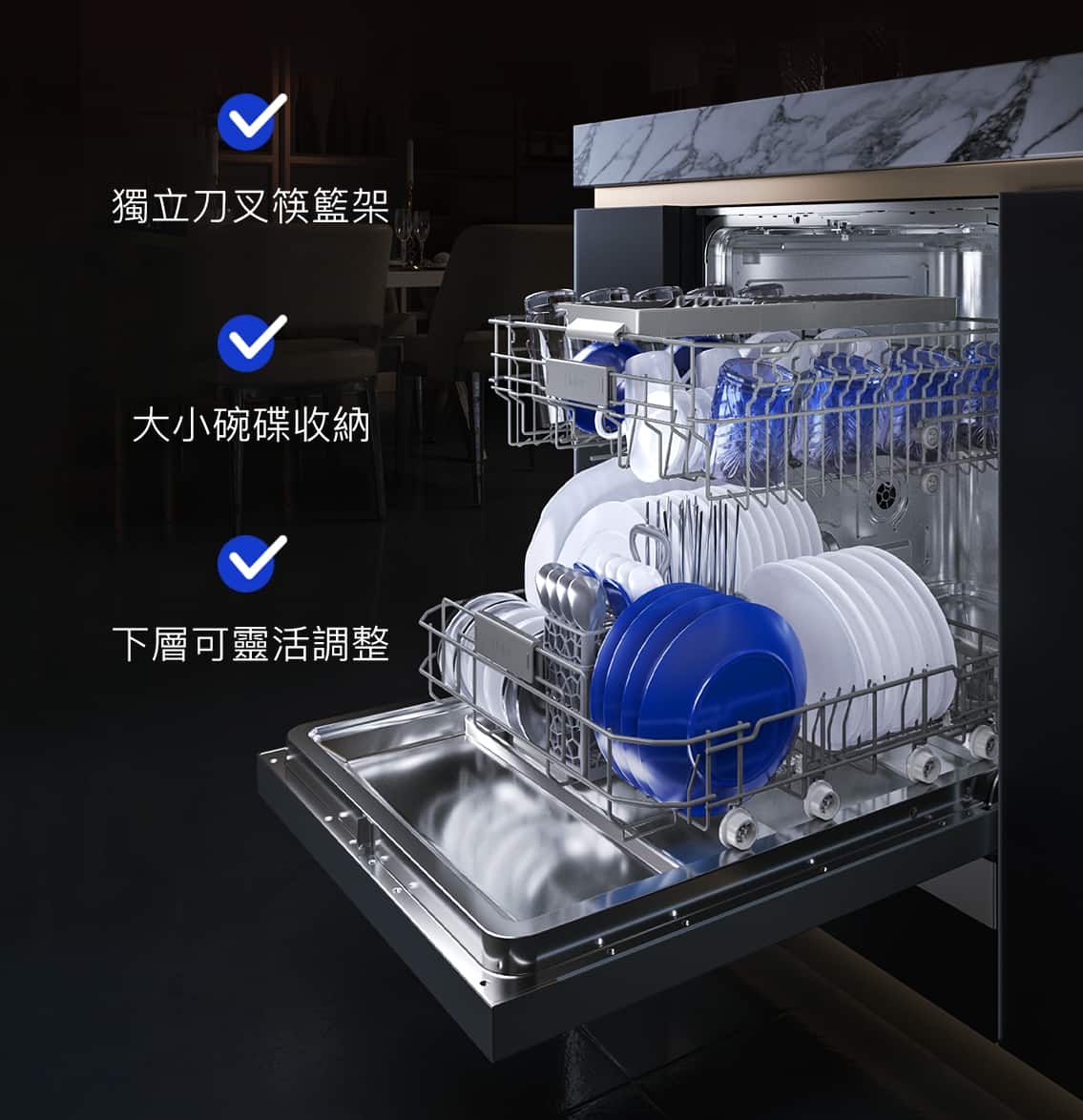 • 獨特分層洗 : 少量餐具可單層清洗,節省用水