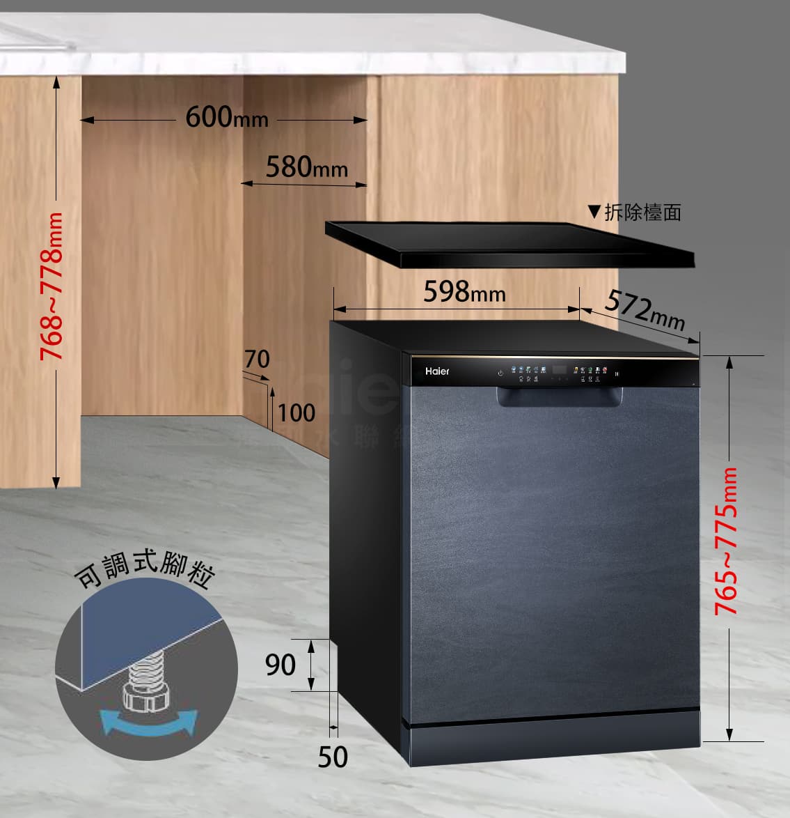 • 獨特嵌入式 : 打造765~775mm可調式機身,更彈性規劃運用空間